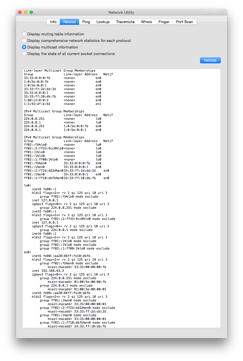The tools available for exploring and diagnosing resolution and discovery problems have otherwise apparently remained unchanged. Network Utility is now hidden away in /System/Library/CoreServices/Applications, which is a pretty daft place to hide such an essential tool. In that same folder you will find Wireless Diagnostics, which is also very useful at times. Wireshark and other packet sniffers require a lot of patience, deep understanding, and are far from simple.