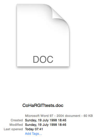 The first task is to ensure that apps recognise them as being in Word 97 format, so that they try to use the right code to import their binary content. Do this by giving each a ‘.doc’ file extension, which is standard for Word native format documents. Sometimes this does the trick, but with older Word files, current import code no longer seems to work properly. An easy test of that is to select the document in the Finder. If generic Word import libraries can support access, you should now see a Quick Look preview of the content of the document. If instead you still see an empty document, or one for another app, you need to get a bit more ingenious.