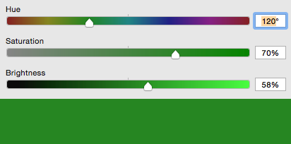 How given levels of brightness (or lightness, when fixed to the brightest white), hue, and chroma combine to define a green.