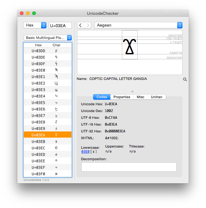 You can explore Unicode encoding and related information using UnicodeChecker.