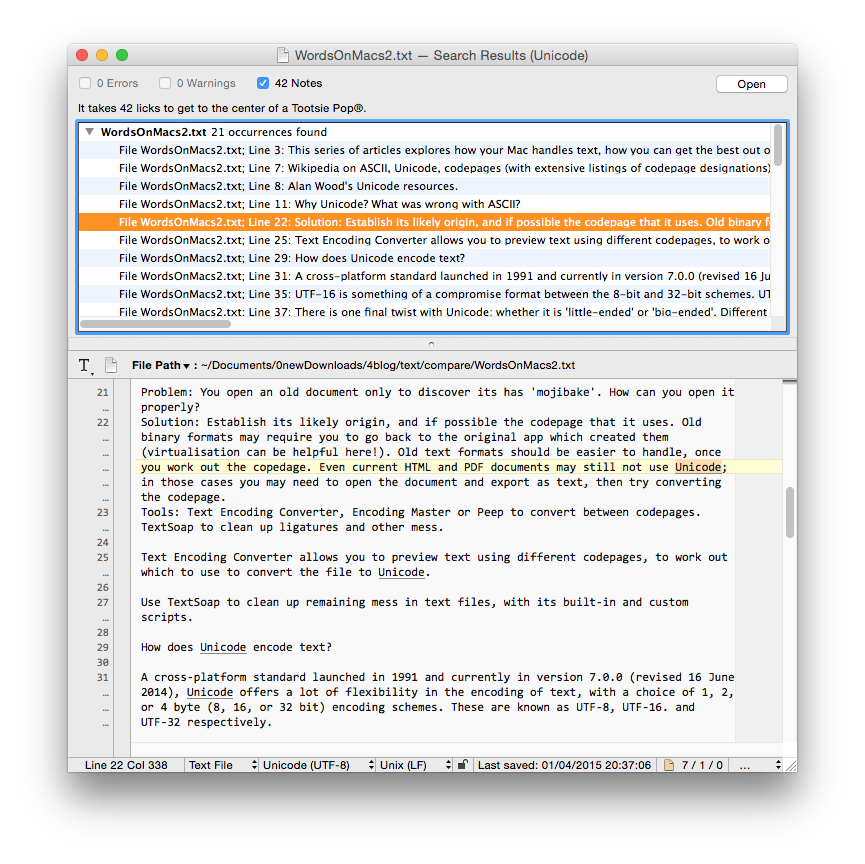 Its single- and multi-file search are a different matter: here BBEdit stands in a class of its own. It boasts regular expression (regex) and (Unix) grep support, takes you straight to the hits, and has a bundle of other power options.