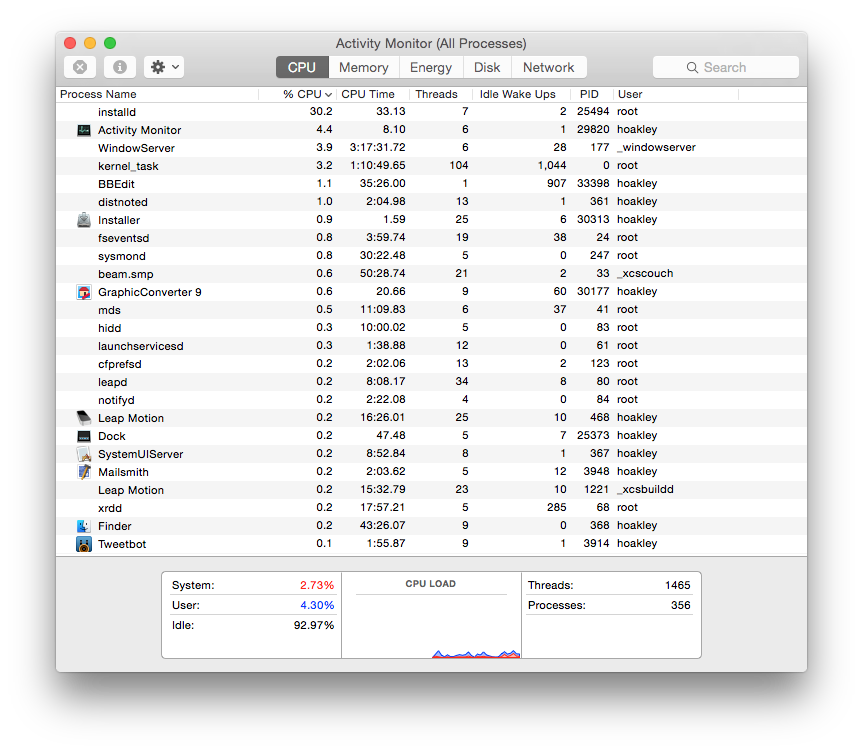 Yosemite’s improved Activity Monitor is much better, and allows you to work out what those apps are taking time to do. In many cases, you will see that key tasks are disk-bound, in which case a capacious SSD might work a treat, or are being stifled by a slow Internet connection. Although your processor will have two or more cores, monolithic apps can still hog one and would only then benefit from greater processor speed.