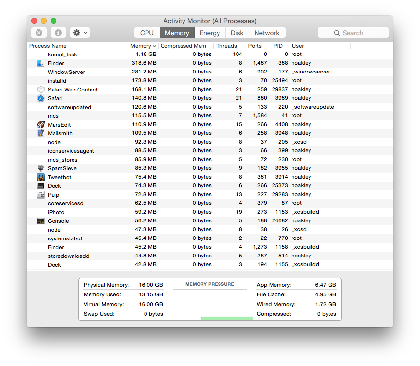 If you use the front-line utility for monitoring performance, Activity Monitor, it is all too tempting to assume that throwing loads of memory into your Mac will solve all its problems. Although OS X does love lots of physical memory, you need to develop a better feel for the bottlenecks that constrain your everyday work, rather than getting alarmed at how much memory apps seem to use. OS X has sophisticated memory management which tries to make the best use of the hardware that is available, so it should be no surprise if it is doing just that.