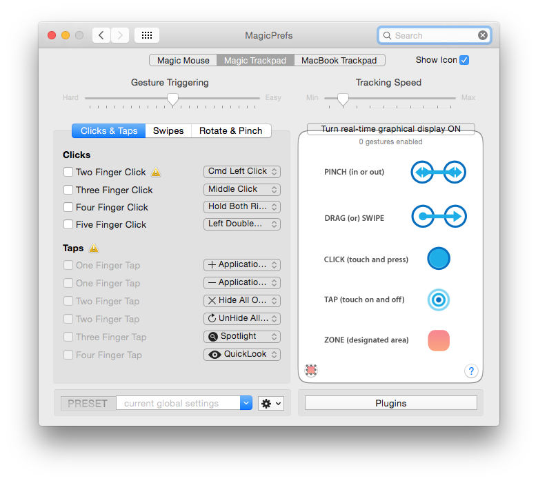 With the trackpad comes a pane for System Preferences that allows you to configure the gestures supported, and their effects. This is notable for its beautiful video clips demonstrating each gesture, which help swell the pane to almost 100 MB in size.