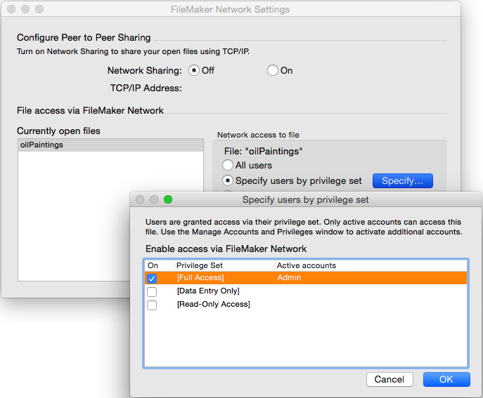 Databases like FileMaker Pro offer robust security with user authentication and associated privileges, which are a good basis for DPA compliance. Although configured through friendly dialogs, you must takes pains to ensure that everyone is assigned and uses their own unique user identity, and that their privileges are the minimum necessary. Privilege sets are a great time saver, and you will normally find it best to work out standard sets for different work roles alongside database design.
