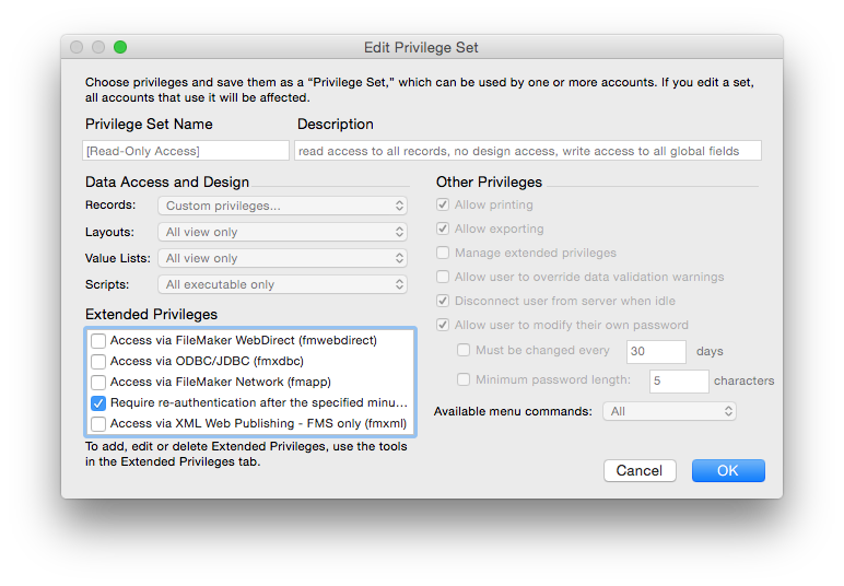 If you use FileMaker Pro to access external data sources, for example through ODBC, consider carefully whether those external data could be copied across to the client. Unintentional leakage of sensitive data to a remote system might then become accessible to an intruder on that remote system; this is particularly important when clients could be ill-secured home or laptop computers, or mobile devices. Whilst FileMaker Go can be exceptionally powerful for iOS deployment, it requires attention to physical and network security.