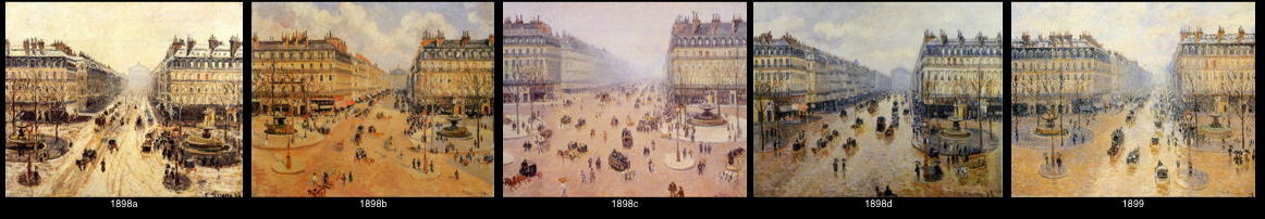 - Avenue de l’Opera, Paris, a branched series of 15 paintings from 1897, starting with 1197;