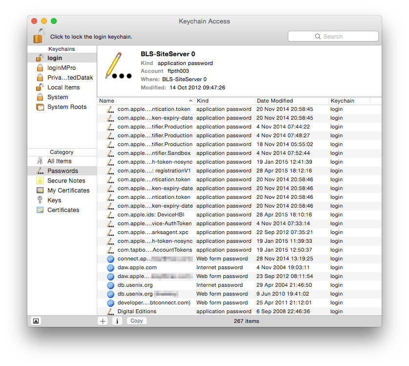 Everywhere that you go you need user names, passwords, and other means of proving your identity. In OS X and iOS these are normally stored in a keychain.