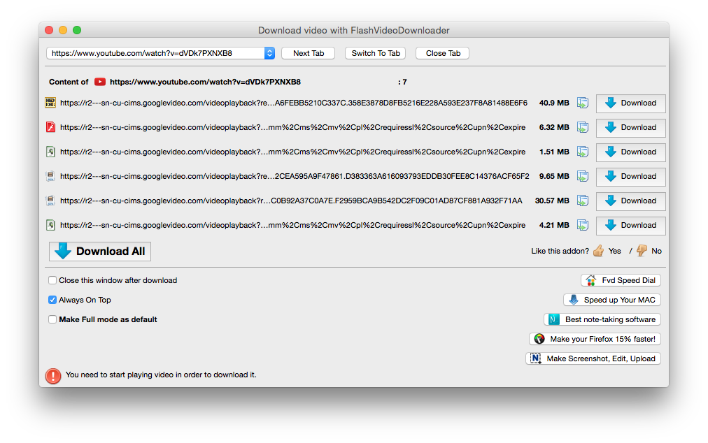 With many sites offering Flash movies putting multiple items on each page, you need to start playing the movie that you want, in order to identify it and start downloading. The tool can also be brought up as a floating pane rather than just a popup menu to help select and convert the download.