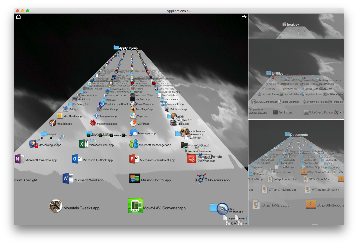 Marc Moini’s 3D fileSpace visual file system is interesting but still seems clumsy to use, and has not proved popular among Mac users.