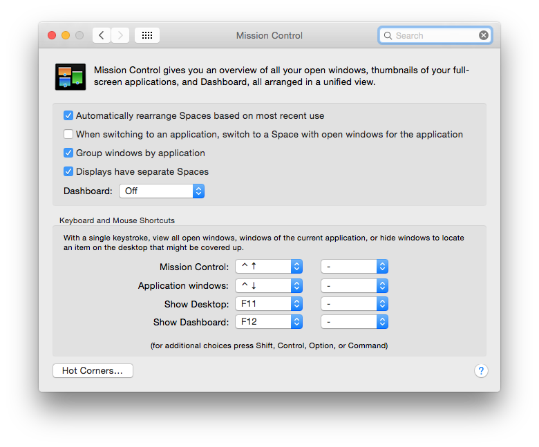 To reverse these, open that pane, and uncheck the second box marked When switching to an application, switch to a Space with open windows for the application. Close all applications apart from the Finder, switch to Mission Control, and you should now be able to delete all the spaces you do not want.