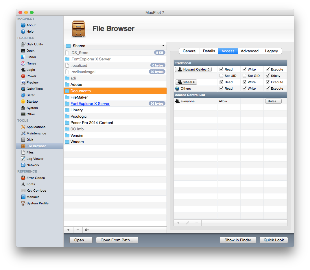 One occasionally irritating problem which ACLs can solve is with inheritance of permissions. For example, documents and folders which you create in the Shared folder (/Users/Shared) default to the same permissions as those which you create in your own Documents folder: that is, you (the owner) have read and write access, but others can only read. If you want to share files and folders placed there, this can force you to manually change their permissions so that others can edit them too.