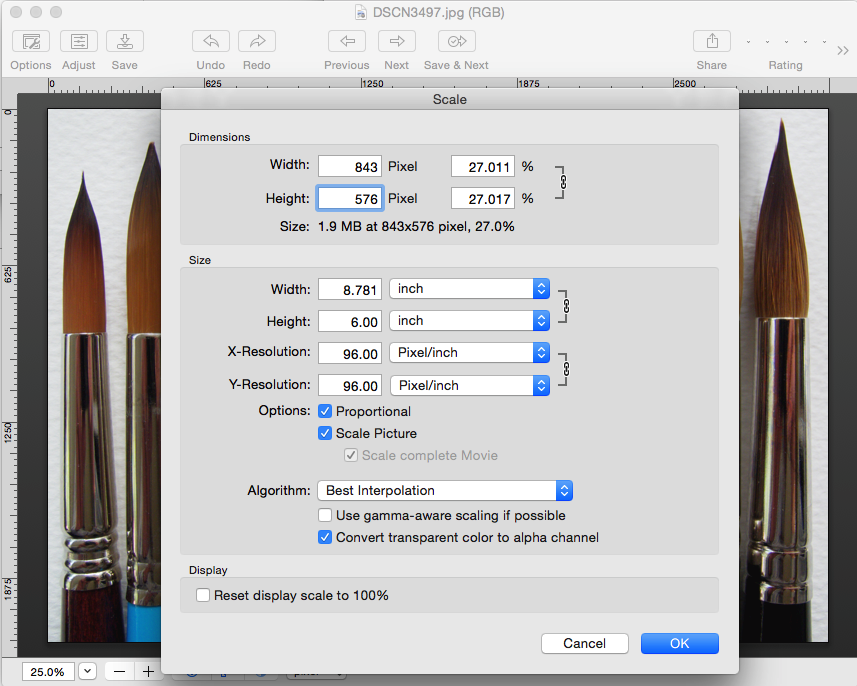 1. Step through actions. Before you can develop your script, you have to work out exactly what you want it to do, and step through each action using an application such as Graphic Converter. The first step in resizing an image for SD video is to scale it so that it is no smaller than 768 by 576 pixels. Then the image needs to be cropped to exactly that size. Decide how to do that.