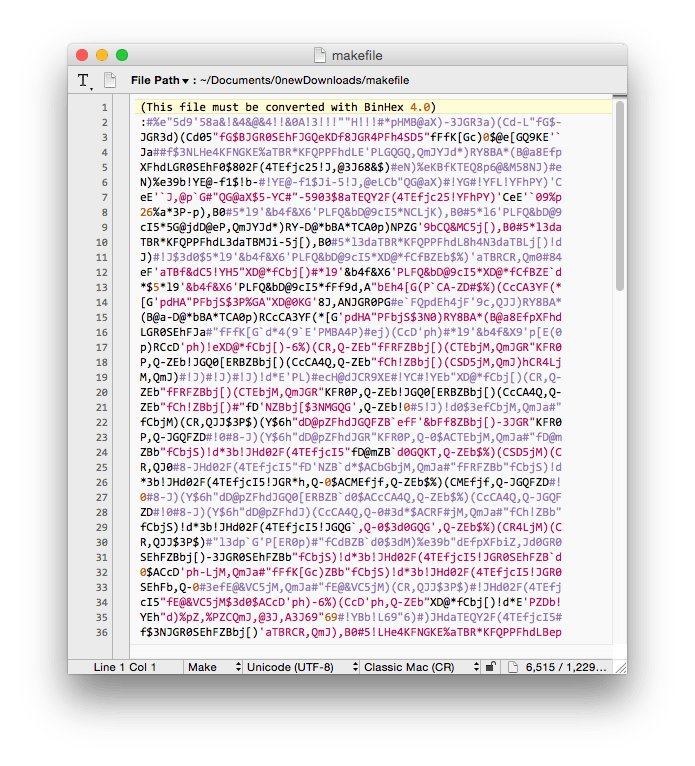 4 Open in text editor. If you are still struggling to identify the file type, and common filename extensions have been no help, open the file using a text editor, such as TextWrangler (free) or BBEdit. You may then see obvious clues as to the file’s format. Here the first line reveals the file to have been encoded using BinHex: either give it an .hqx extension, or decode it direct.