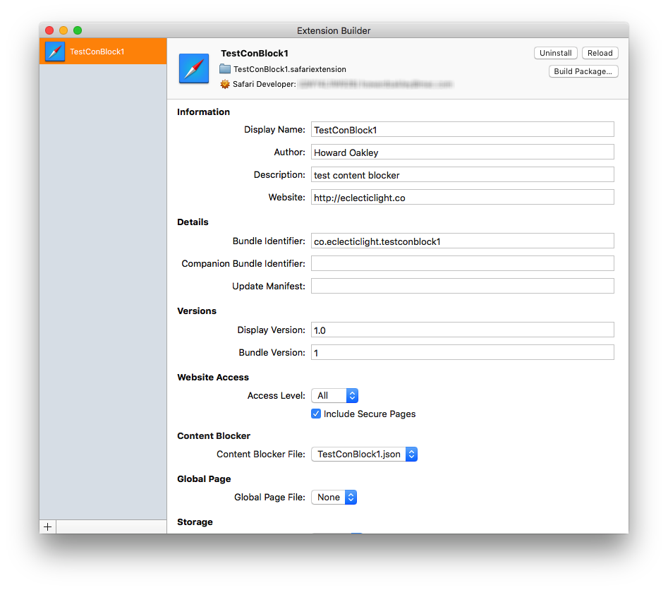 The develop cycle is actually smoother than it first seemed: edit your JSON source, install the content-blocker using the button in Extensions Builder, test on sites, uninstall the blocker, edit the JSON, install, and so on. But it is so much better for having done it the ‘official’ way with a certificate, as once you are happy that your content-blocker is doing the job, you can leave it installed, even share or sell it.