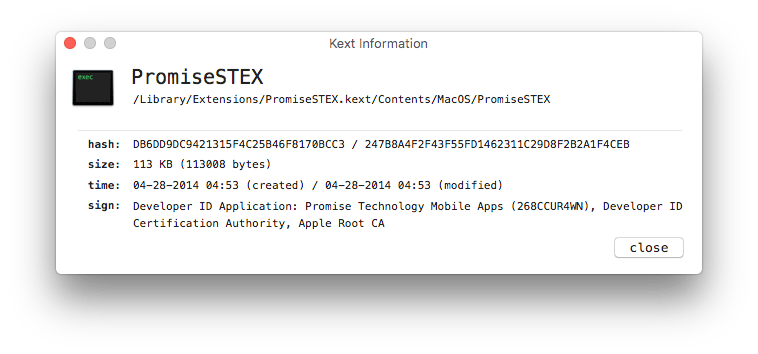 Objective-See’s new KextViewr tool changes this. As with Patrick Wardle’s other free security tools for OS X, it shows you what is there, provides its VirusTotal ‘threat’ score, details its code signature and authority, and so on.