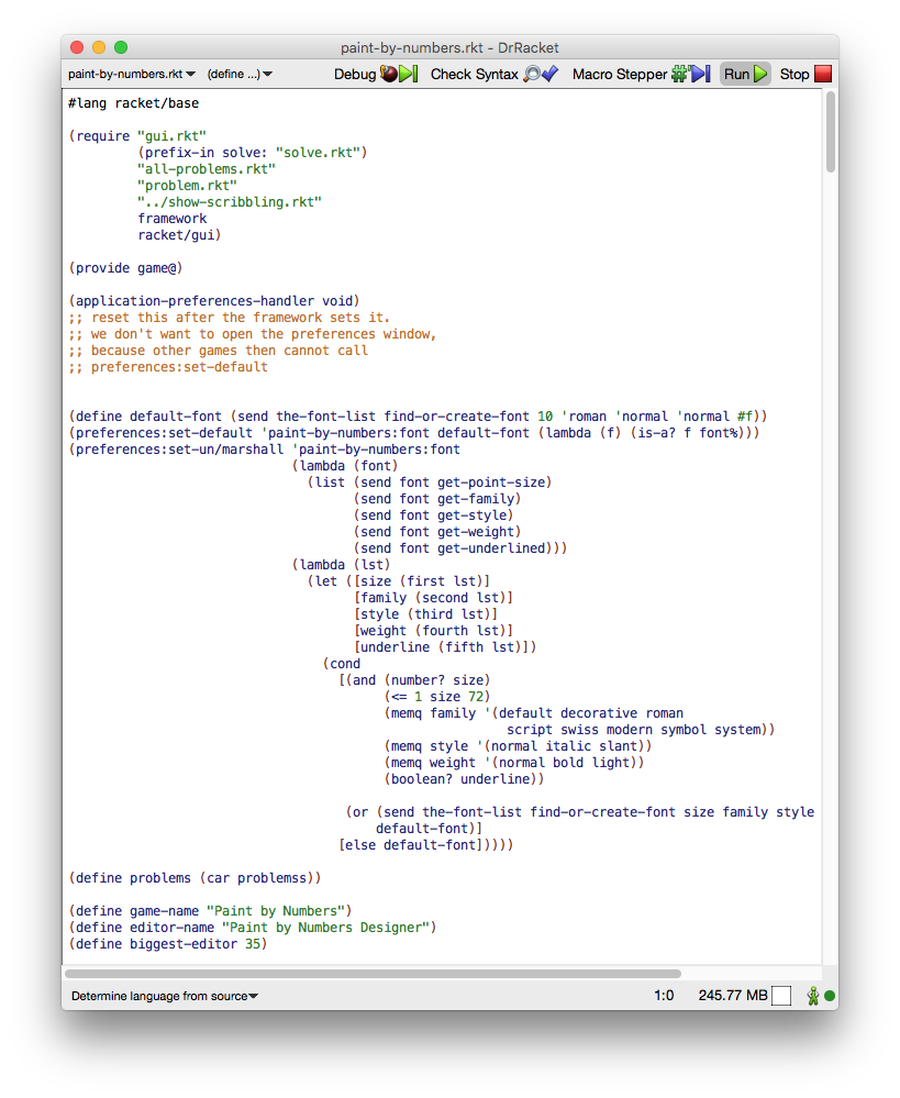 An extraordinarily concise and powerful language, it is also one of the oldest, being defined in 1962 and first implemented a couple of years later. It uses Greek and special symbols in its own custom font, concatenating them into cryptic lines which make perl look verbose. Its last Mac implementation, APLX 5.1, has not been updated for four years, but amazingly still seems to run under El Capitan. If you’re looking for a really challenging language, buy a copy for £425 from MicroAPL.
