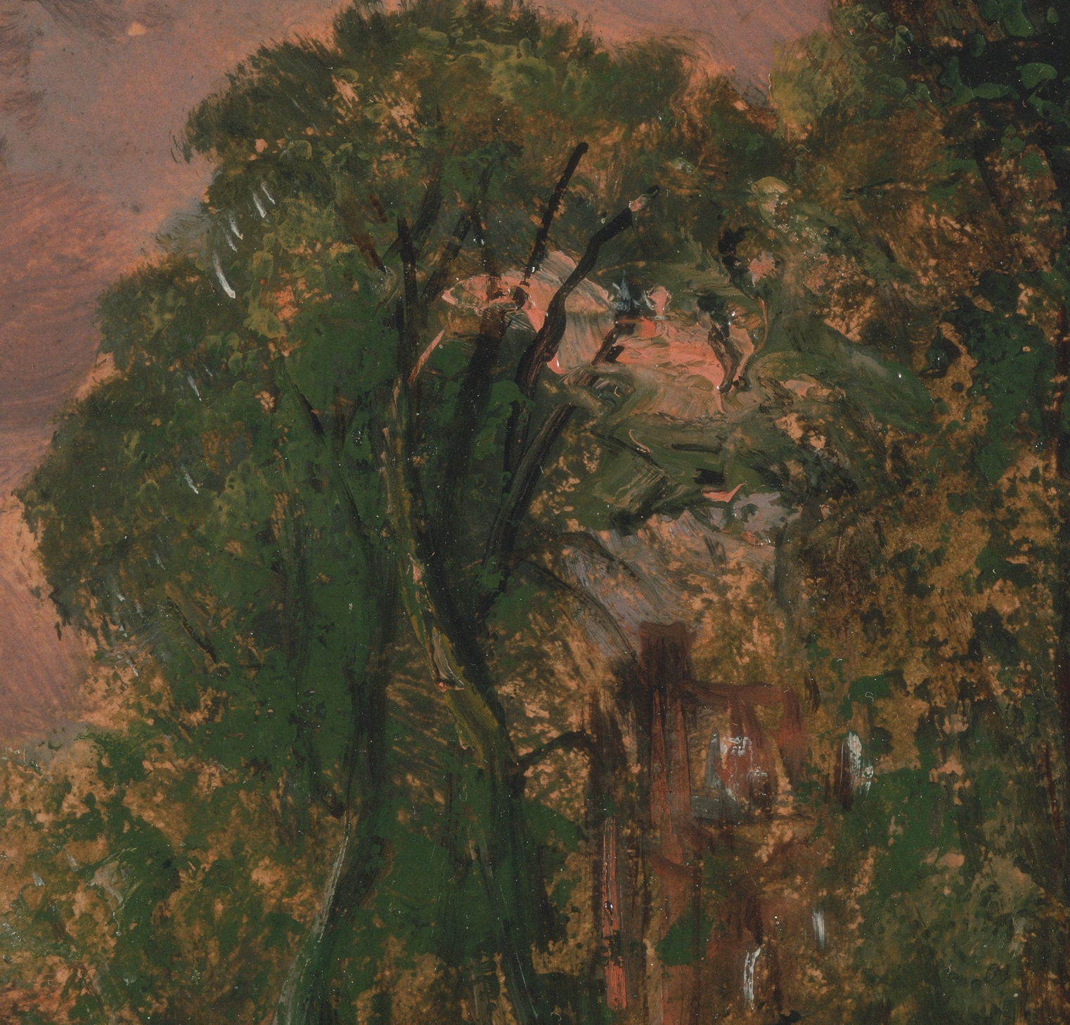 This early oil sketch of a lane near his home in Suffolk, England, was executed very quickly onto paper, which was later laid on canvas.