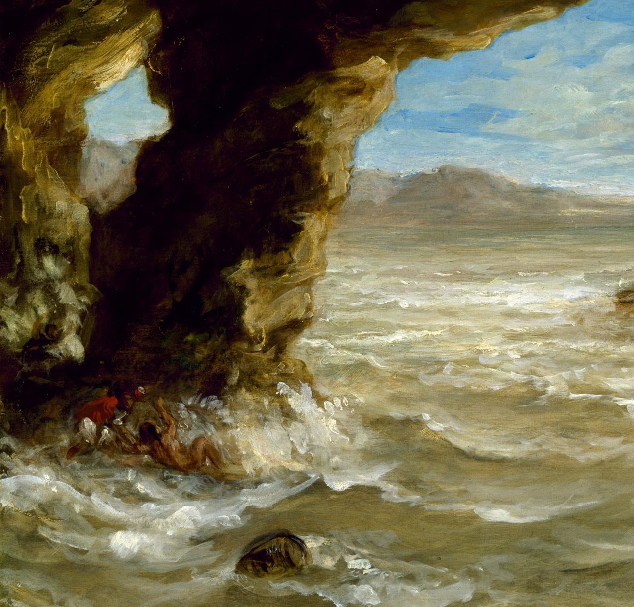 As with Turner before, and Courbet later, Delacroix left his marks in the foam and rough surface of the sea in his Shipwreck off a Coast (1862), one of his last paintings.