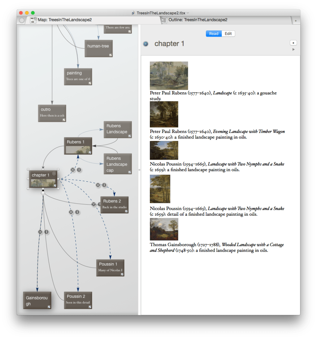 My example Storyspace 3 file is here: TreesInTheLandscape2