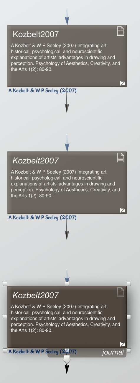If you have followed this workthrough, you will have seen that Storyspace 3 (and Tinderbox) have extremely efficient interfaces which make tasks like this – once you know how to do them – quick and accurate. If you are working with dozens or even hundreds of citations, you will need to maintain good order and work systematically, but the tools work excellently.