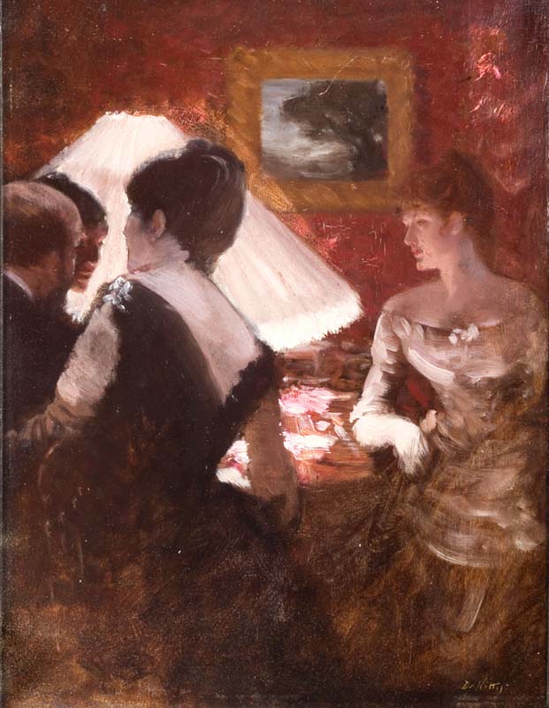 In the late 1870s, he and his wife socialised frequently with Degas, Manet, and Caillebotte. Although his circle does not appear to have included Monet, Berthe Morisot, or Pissarro, he bought, collected, and appreciated paintings by Monet and Morisot. At the time of his death, De Nittis owned at least four paintings by Monet, one by Morisot, four by Degas, and one by Manet.