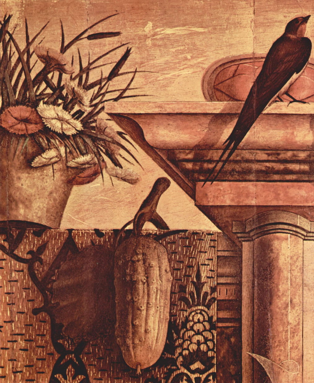 Cucumbers appear most frequently in the garlands of fruit and vegetables with which Crivelli decorates his many paintings of the Virgin and Child.