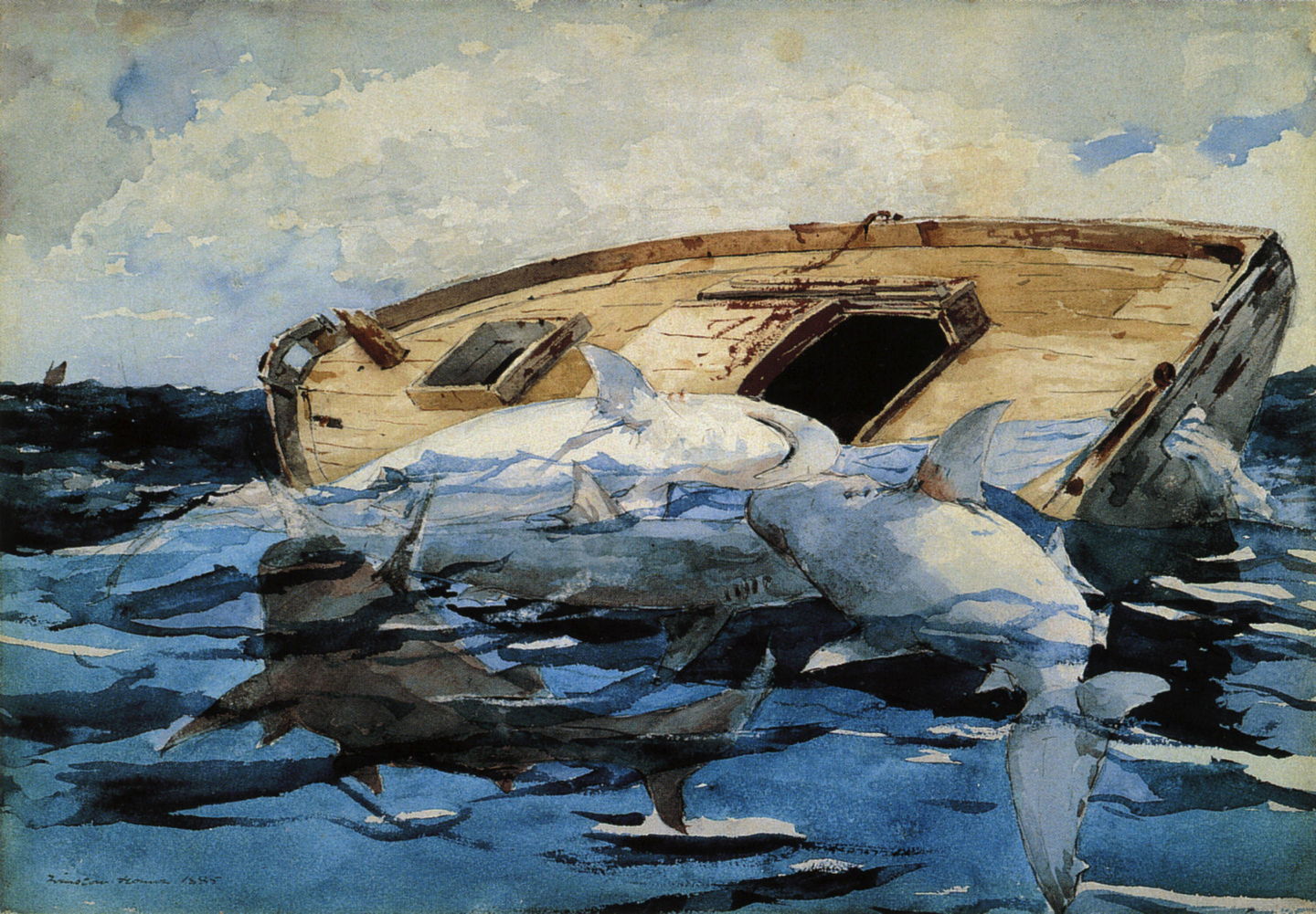 Watercolours such as Sharks (The Derelict) (1885) showed that his time at Cullercoats had brought about lasting change, which ensured his well-deserved reputation as one of America’s greatest painters.
