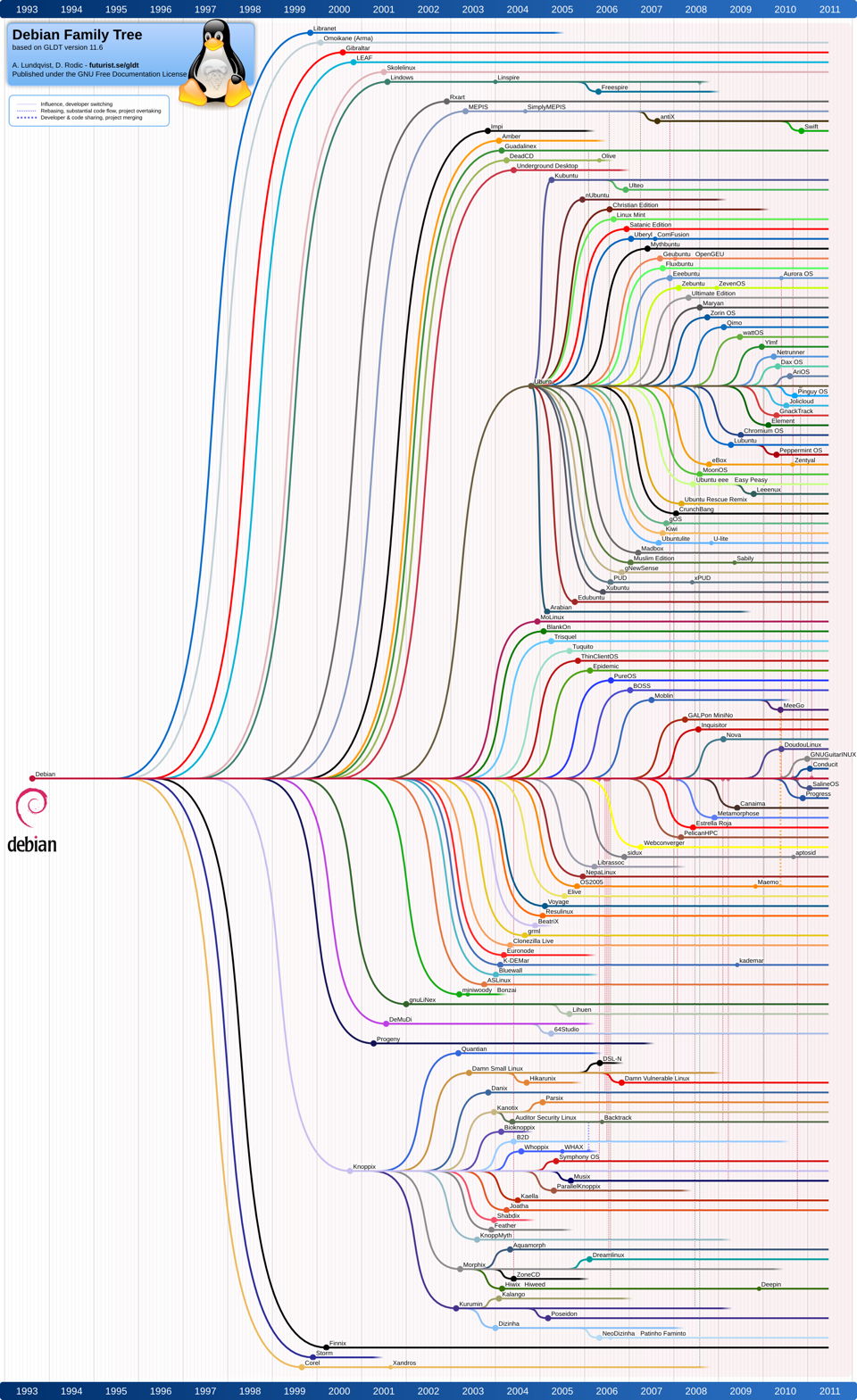 Do not put arrows into such branching trees (above) unless they have inherent meaning. The existence of a branch and the unidirectional march of time already make it clear what a branch means. However, where some branches may influence others, an arrow indicating the direction of influence is valuable.