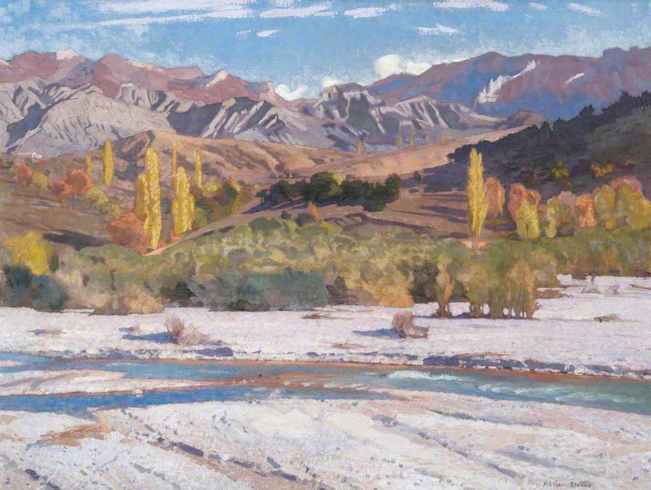 Stokes continued to paint well into the twentieth century, still retaining his love of big landscapes with high chroma colours, as in his Autumn in the South of France, Hautes Alpes (1928).