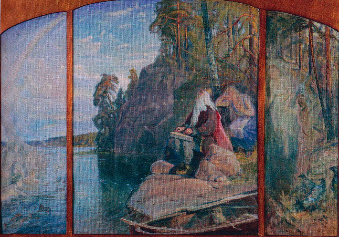 Elias Muukka’s Väinämöinen Triptych (1914) is more barren, and appears to have been set before any birds, beasts, and other humans have arrived.