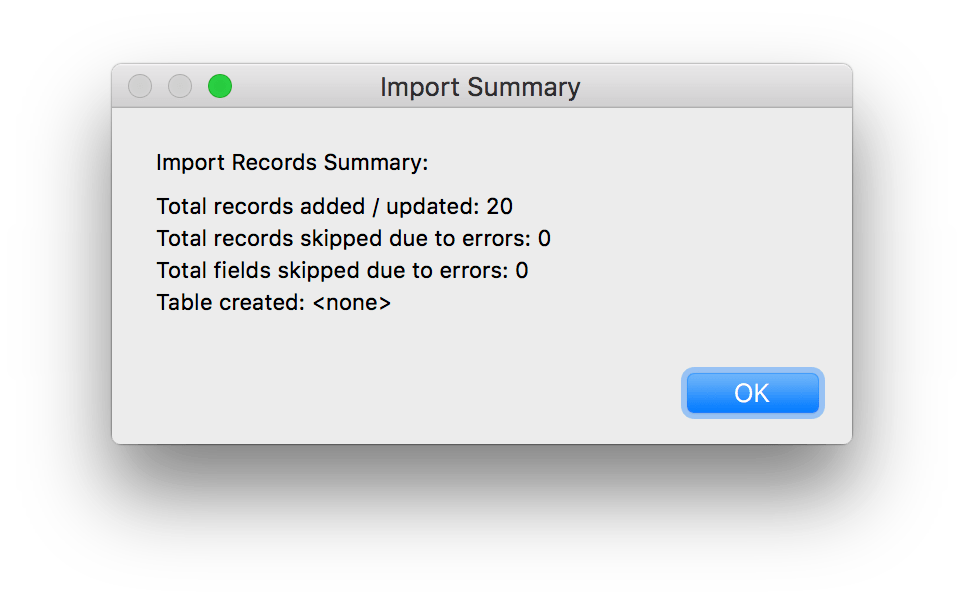 The next dialog may seem more opaque. Check the box if you want any fields with auto-enter options to be updated during the import process. Then click on the Import button.