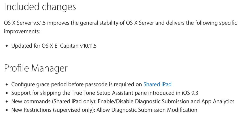 The most recent release of OS X 10.11.5 and OS X Server 5.1.5 was shocking in the complete lack of information released by Apple on what was included. Other than four small changes affecting enterprise users, all Apple could tell us about OS X 10.11.5 was that it was an update.
