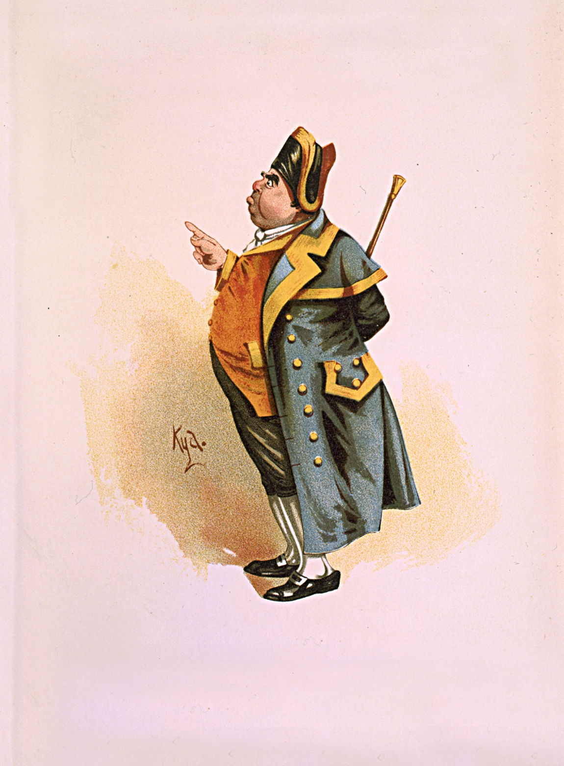 Three other artists who illustrated Dickens did, though, produce paintings of relevance. Joseph Clayton Clarke (better known as Kyd) (1857-1937) painted many portraits of Dickens’ characters, such as the splendid rendering of Mr Bumble from Oliver Twist, shown below. But he did not go so far as to produce any narrative paintings, as far as I can discover.