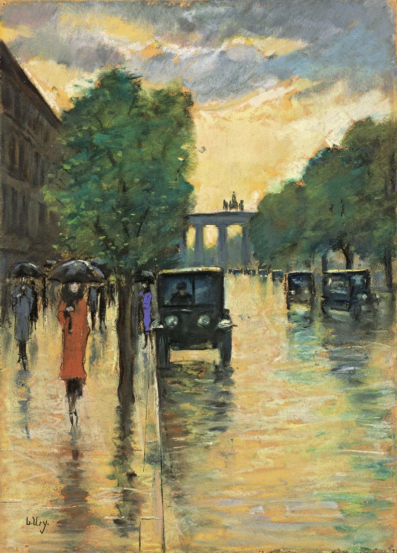 Carl Pippich uses contrasting colour to distinguish the cars in his pastel painting of Carlsplatz, Wien (1908). Lesser Ury painted many small plein air works in Paris and Germany during the 1920s, which reflect the dramatic changes that had taken place since the days of Monet and Pissarro.