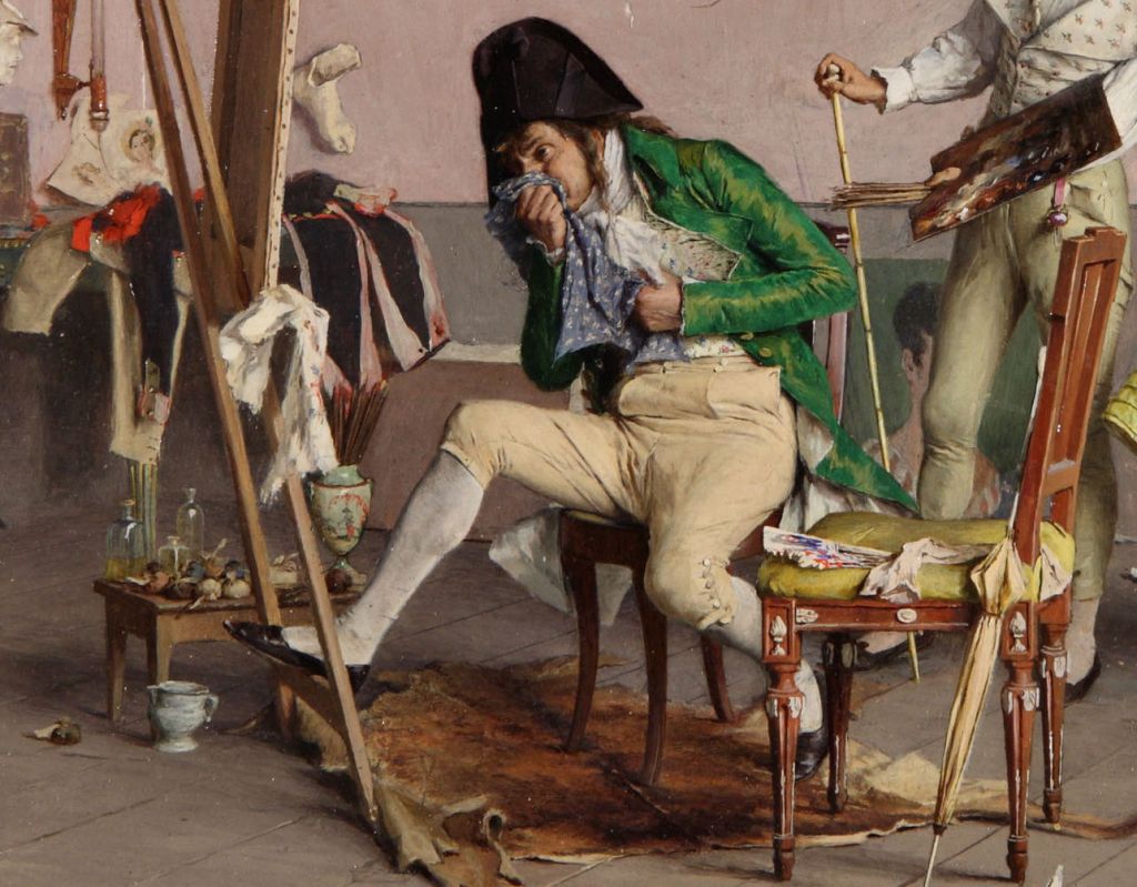 In Quadrone’s witty Every Opportunity is Good (1878), we are allowed a detailed look at the painter’s paraphernalia, which includes several paint bladders on the low table behind the easel, and one on the floor. Although this was painted well after the introduction of paint tubes (which I will cover in a subsequent article), bladders remained relatively cheap and popular quite late in the 1800s.