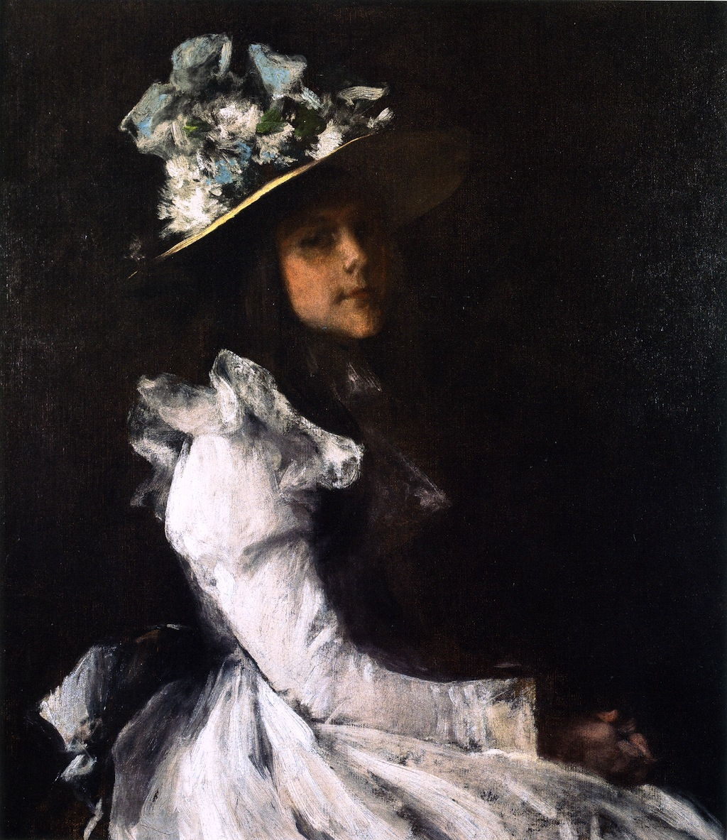 Chase’s wife came from an artistic family, but was not herself a visual artist. She did become a keen photographer, and appears to have kept extensive photographic records of their growing family. She was Chase’s favourite model, and appears in various roles in many of his paintings, but these are some of the portraits which he painted of her.