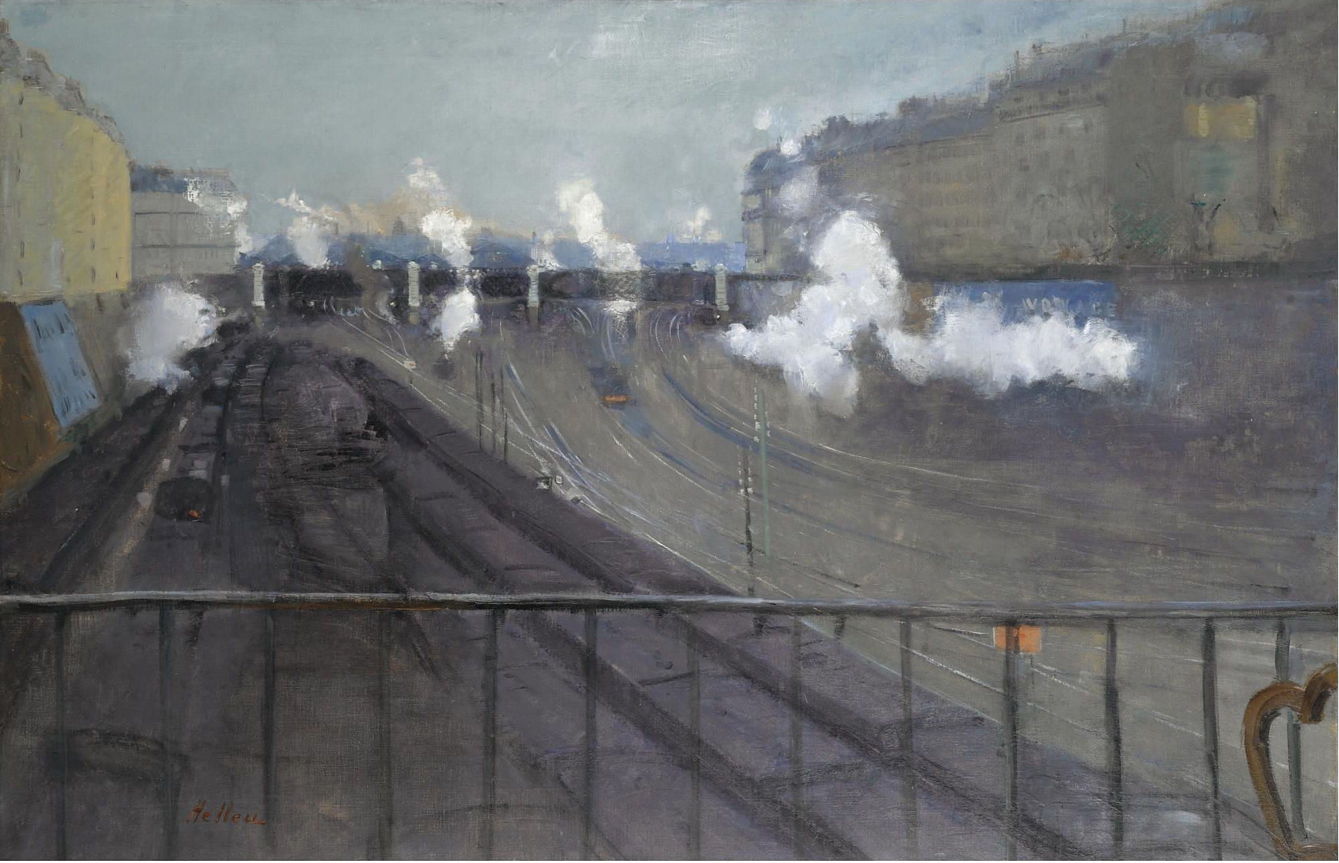 One of Helleu’s earlier Impressionist works, Gare Saint Lazare (1885) offers his version of this motif which had become very familiar with Monet’s 1877 series, discussed here. Interestingly Helleu adopts a high viewpoint which was first used by Manet, rather than Monet.