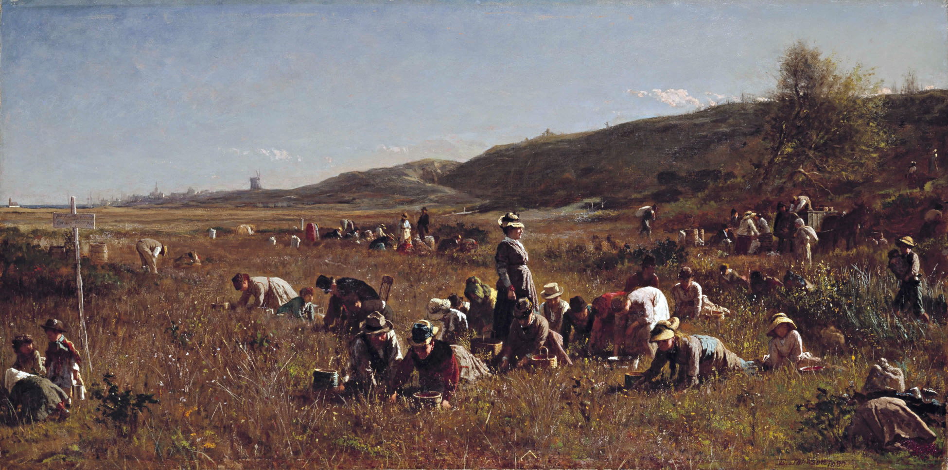 His The Cranberry Harvest on the Island of Nantucket, 1880 (1880) is a gloriously detailed account of the intensely manual harvesting of cranberries, a very traditional farming activity which kept many communities in the north-east alive. It has parallels in European paintings of agricultural labour, including those of Millet, but does not attempt to glamourise or dramatise in any way. And in the distance are harbingers of social change, in the form of smoking chimneys, and towns.