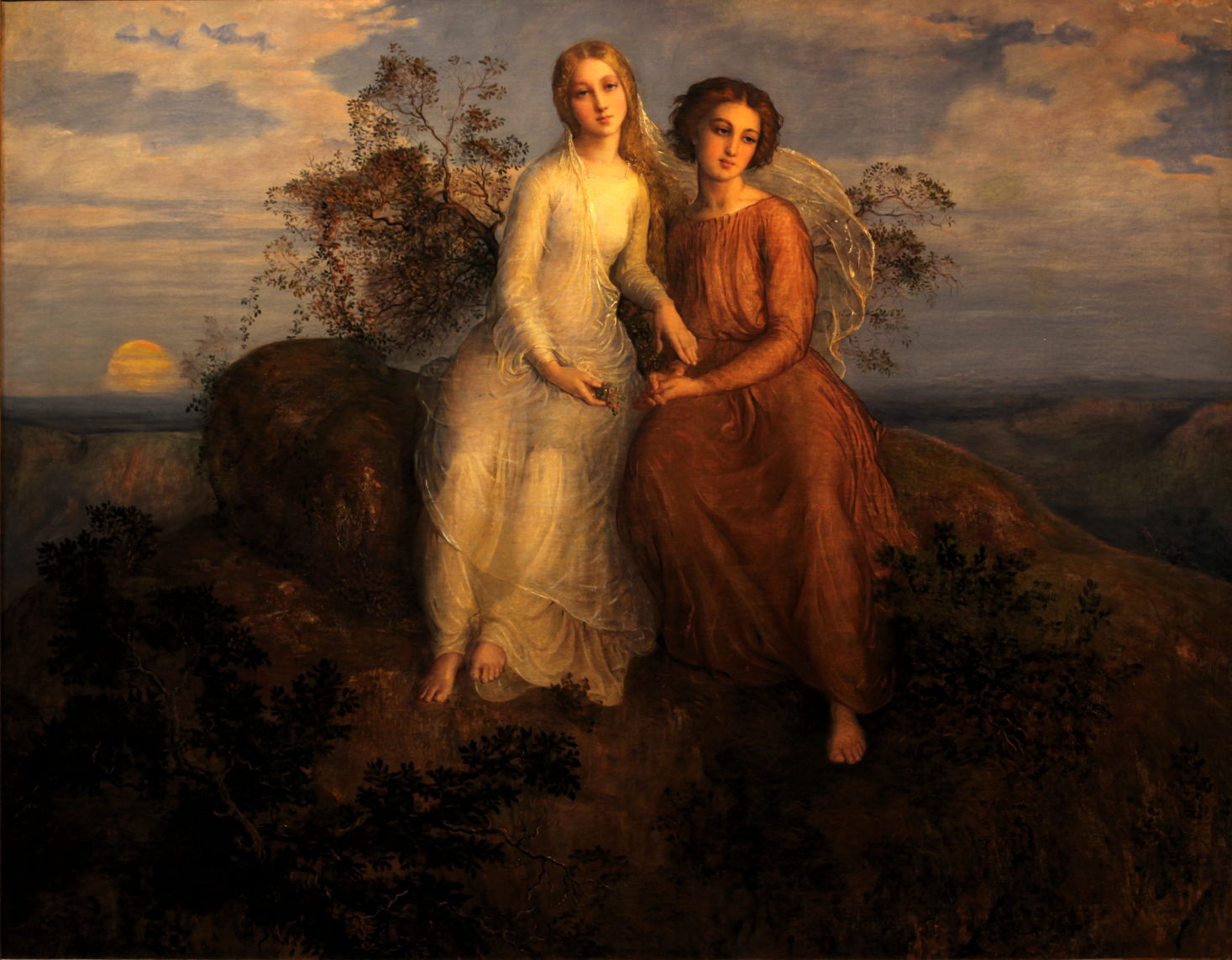 From the summit, the soul (young woman) takes the young man on a flight over the plains below, where the country is less attractive than they might wish. Looking at one another, they give themselves strength in their unity.