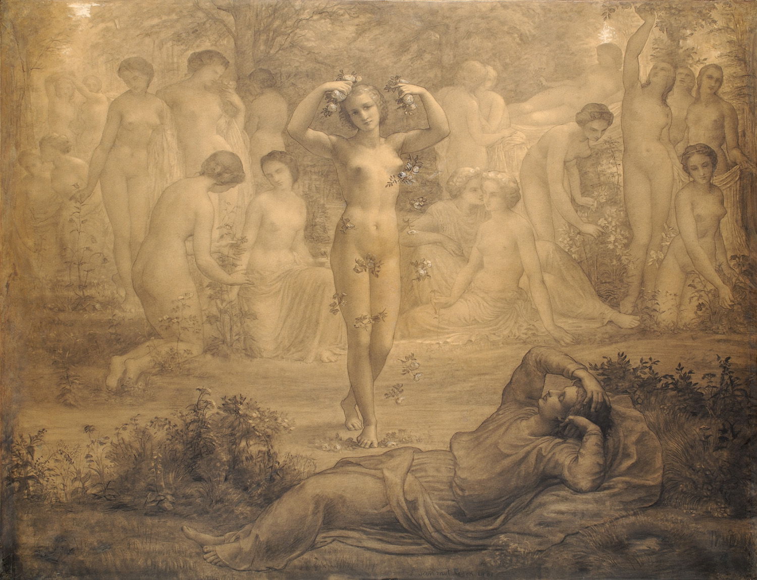This third article in the series covering Louis Janmot‘s (1814–1892) epic narrative series of paintings, Le Poème de l’âme (Poem of the Soul), shows the first half of the second group, drawn in charcoal. I believe that these are each of about 130 x 145 cm in size, and were completed during the decade 1860-70, and certainly by 1881.