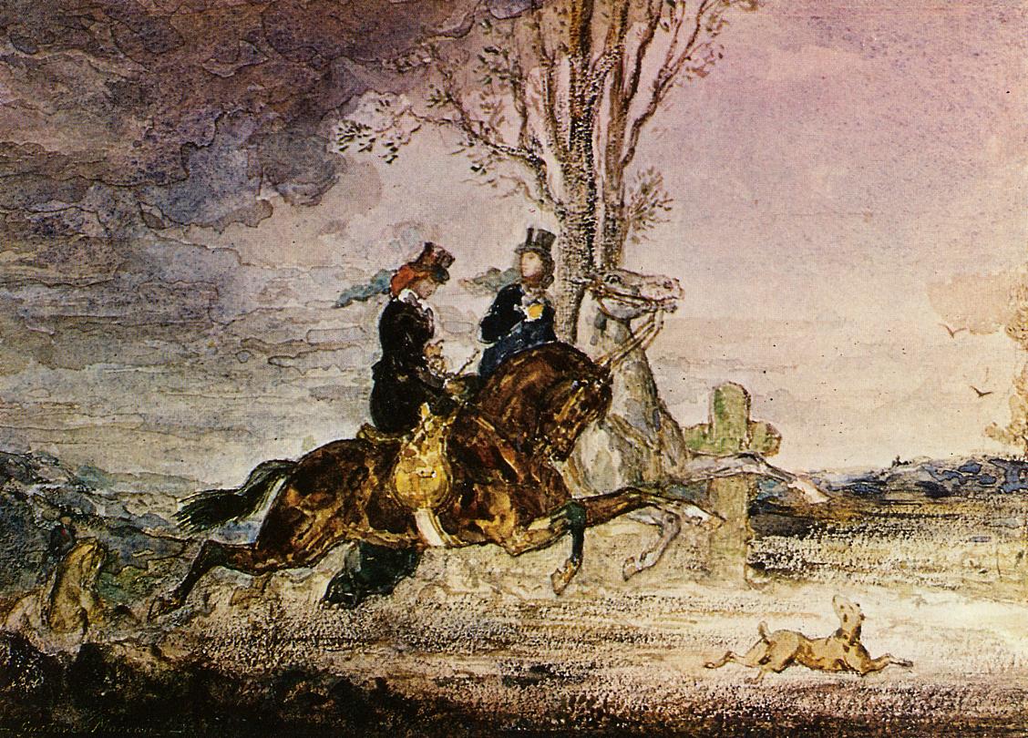 He also tried his hand at some vivacious equestrian works inspired by Delacroix and Alfred de Dreux, including the watercolour Two Modern Horsewomen (c 1852) above, and Scottish Horseman (c 1854) in oils, below.