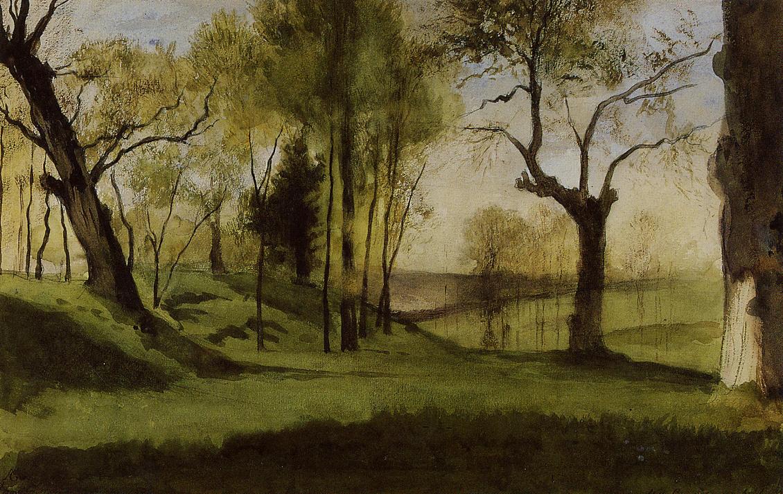 In addition to the copies which he made in Italy, he painted some works of his own, including this landscape, which I think should be titled View of the Villa Borghese (1858), although most sources claim it is of the (unknown) Villa Borthese.