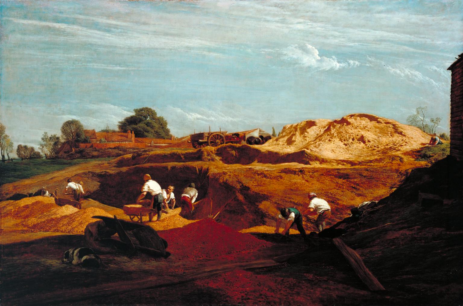Kensington Gravel Pits (1811–12) gives a good idea of the quality of Linnell’s early paintings, and is an important historical record. When he painted this, Linnell was living in what is now known as Notting Hill Gate, in London – but was then the village of Kensington Gravel Pits. These open quarries had supplied gravel for the construction of London since the early sixteenth century. The Kensington area was then quite rural, which was an attraction to Linnell and his colleague and friend, William Mulready (1786-1863), with whom he shared accommodation at this time.