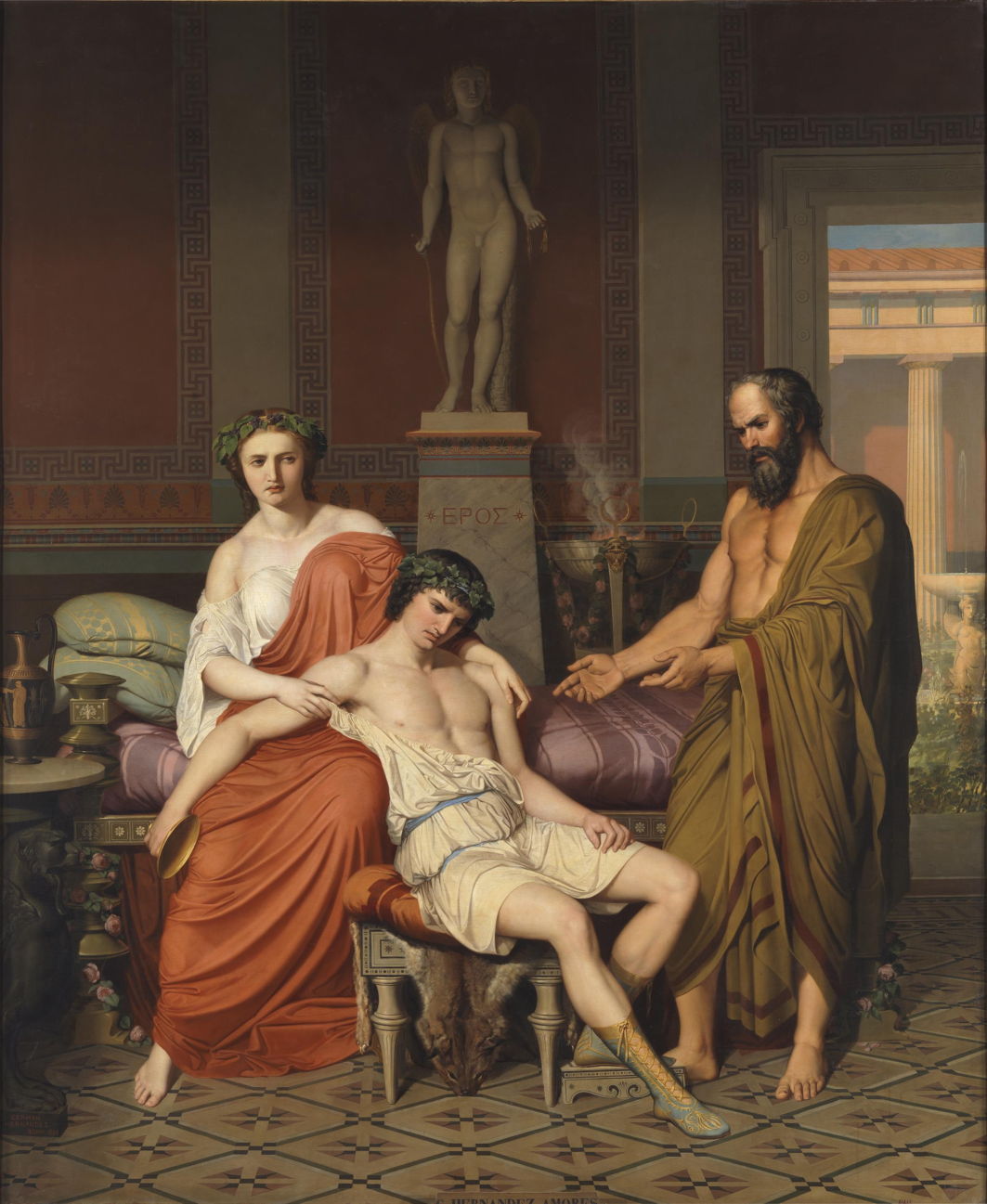 So does Germán Hernández Amores’ Socrates Chiding Alcibiades in the Home of a Courtesan from 1857.