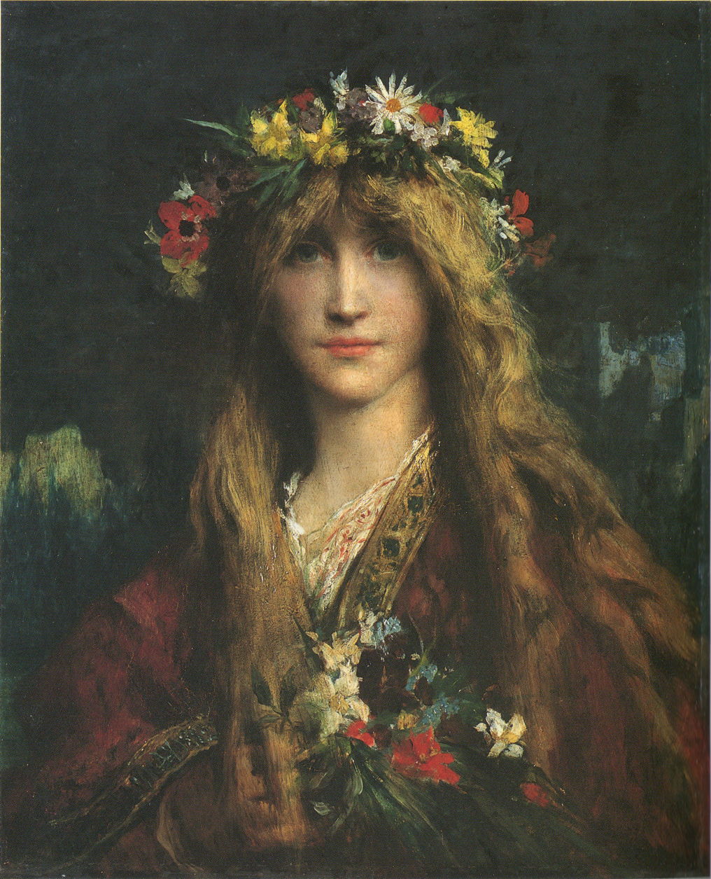 Ophelia (1882) shows the tragic heroine from Shakespeare’s play Hamlet, who has been a favourite subject for painting, particularly during the nineteenth century.