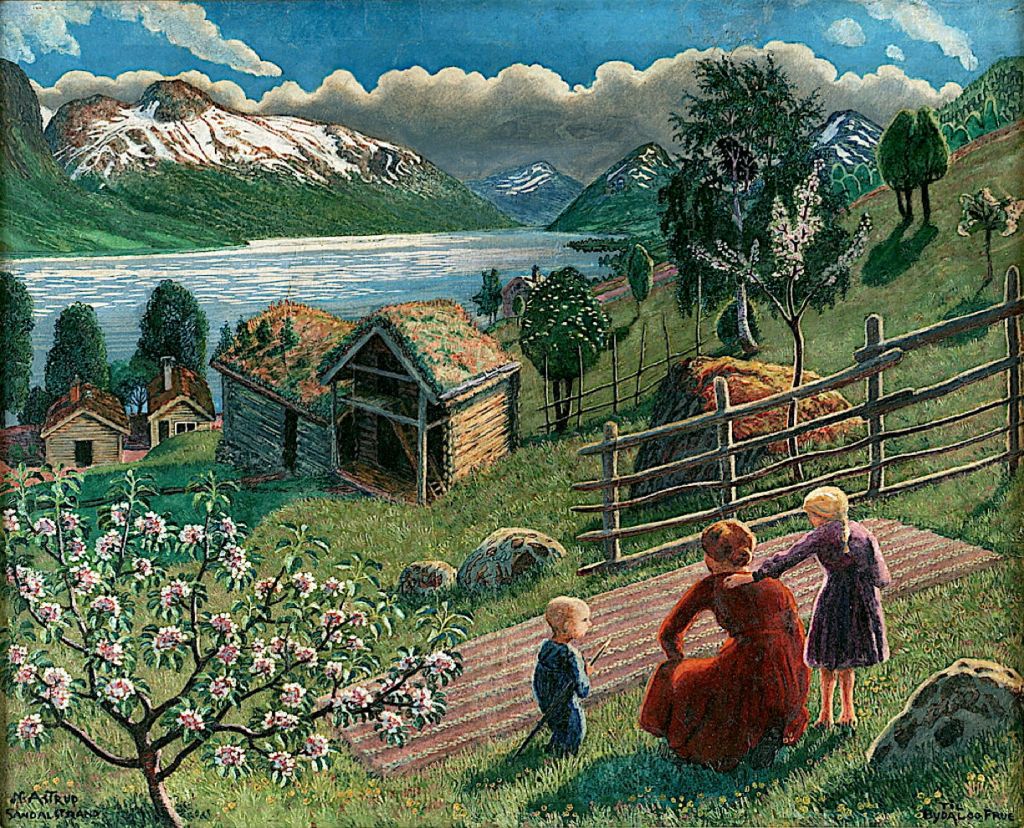 By 1925, Nikolai Astrup had recovered from his depression and frustrations of five years earlier, and was painting and making prints avidly in the family’s smallholding at Sandalstrand, on the southern shore of Jølster Lake in western Norway. Although spending the winter in North Africa in 1922-23 had helped his health for a while, he still suffered frequent chest problems and was far from being well.