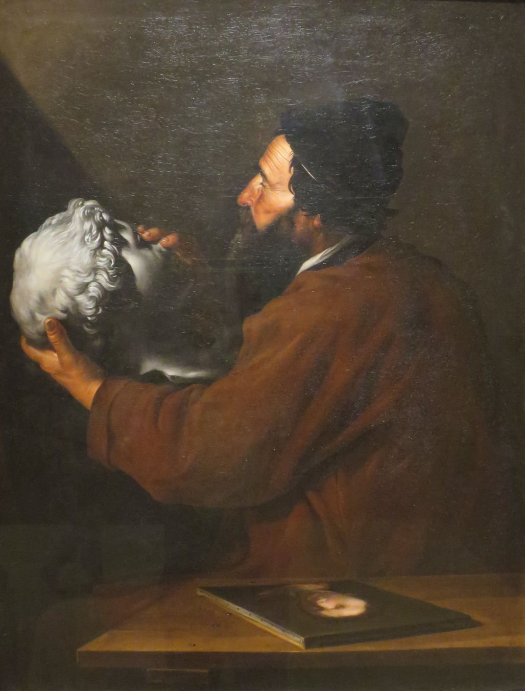 José de Ribera painted at least two different series showing the five senses, both around 1630. The Sense of Touch, as with its sister in the Prado, uses a blind man feeling a sculpture, which is both novel and a highly appropriate image.