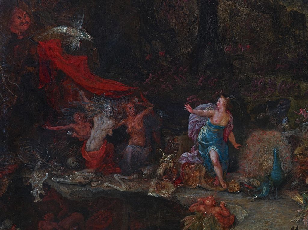 Juno’s cool blue robes and a couple of peacocks stand out from the reds and browns, the monsters and the tormented. She waves at the trio of Furies, with their snake-filled hair and screaming faces. A few years later, Wouters painted another version which could only have been based on this original.