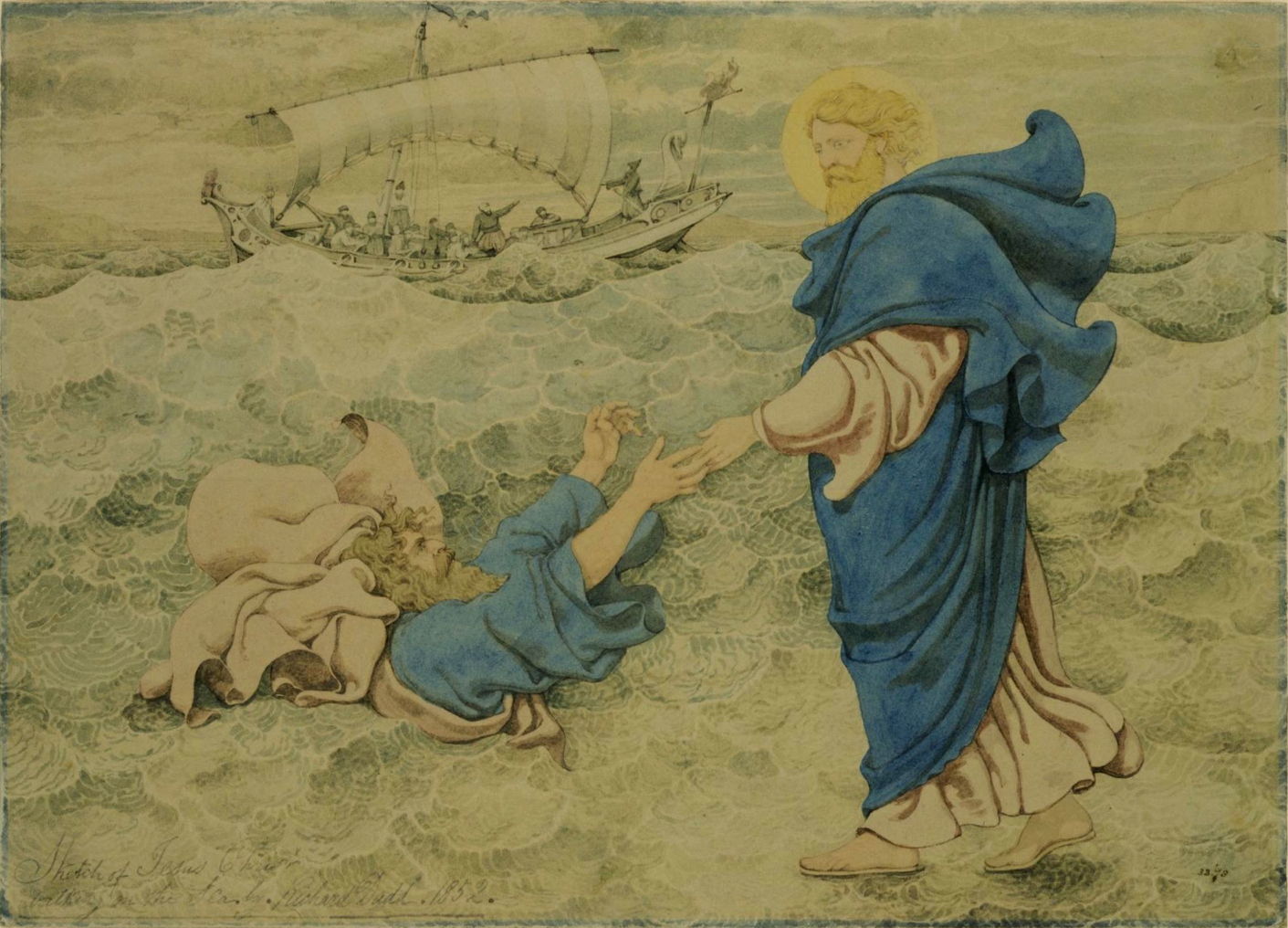 I should have included Dadd’s watercolour of Christ Rescuing St Peter from the Waves (1852) in an earlier article in this series, but it serves here as a reminder of his mature style towards the end of his first decade living in a secure institution. This is drawn from the popular New Testament story in which Jesus walks on water, but Peter almost drowns when he does so then becomes afraid. This painting shows Dadd’s wonderfully textured water surface.